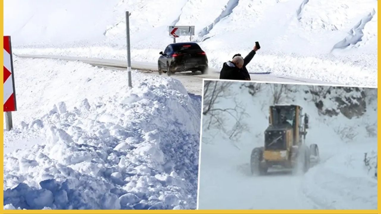 İş makineleri, karın ve rüzgarın sürekli kapattığı yolları her defasında yeniden açarak ilerlemeye çalışıyor.