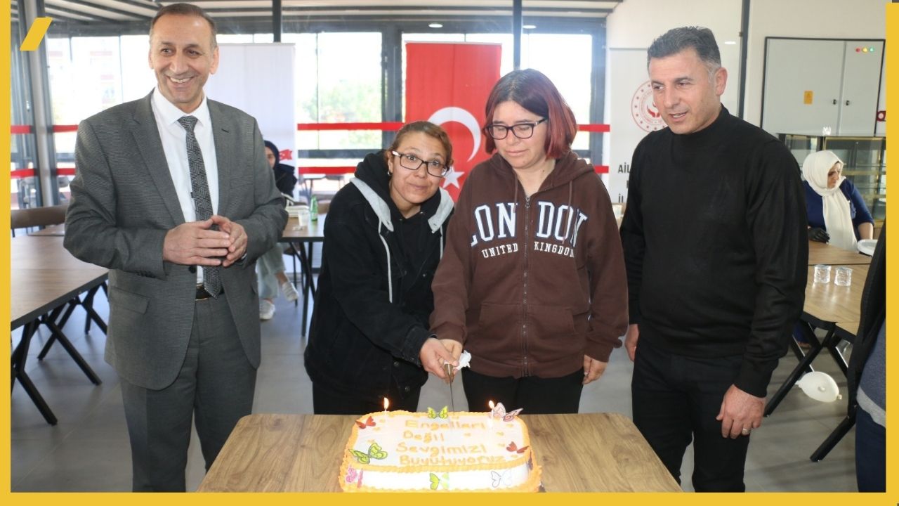 Düzenlenen pasta kesimi, özellikle engelli bireylerin yüzlerinde tebessüm oluşturan, pozitif duyguların yaşandığı özel bir an olarak öne çıktı.