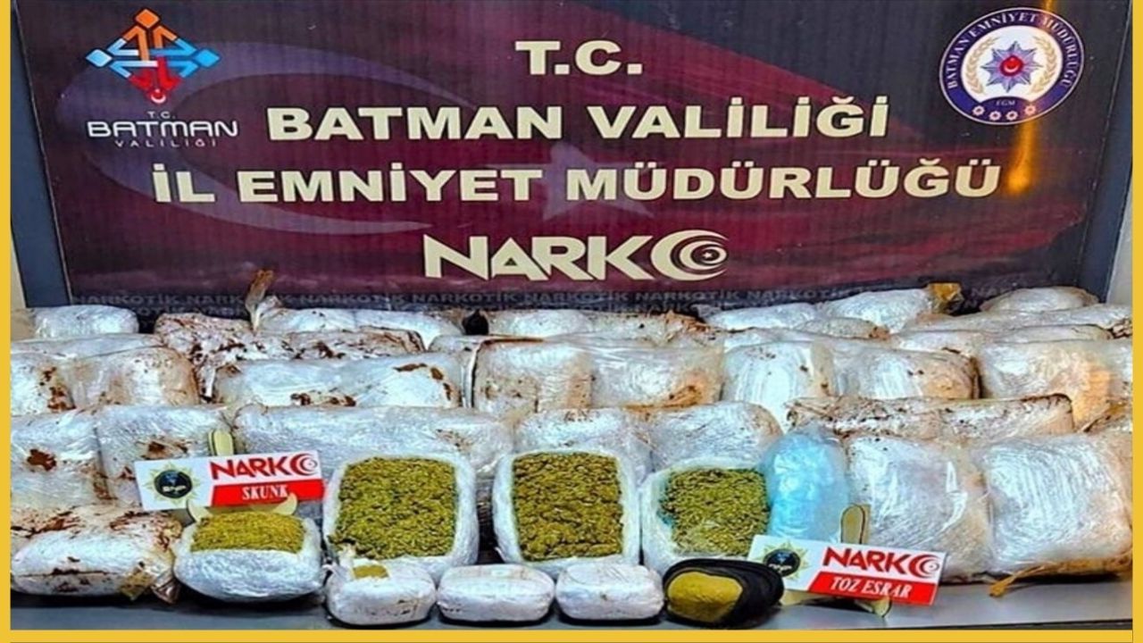Çalışmada, kent girişinde durdurulan tırda narkotik köpeği 'Mailo' ile yapılan aramada, 35 kilo 800 gram skunk ve 2 kilo 100 gram toz esrar ele geçirildi, 1 şüpheli yakalandı.