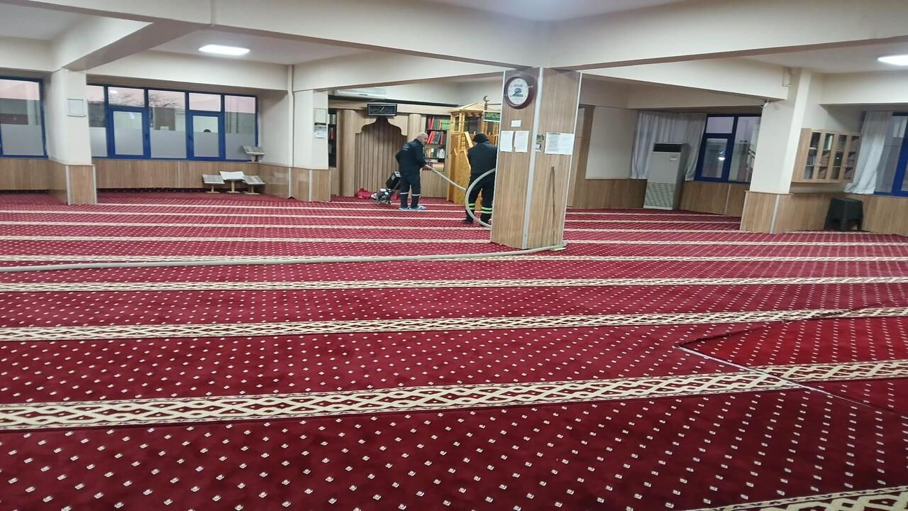 Halılardan pencerelere, minberlerden avlulara kadar her nokta, özel ekipmanlarla kirden arındırılıyor.