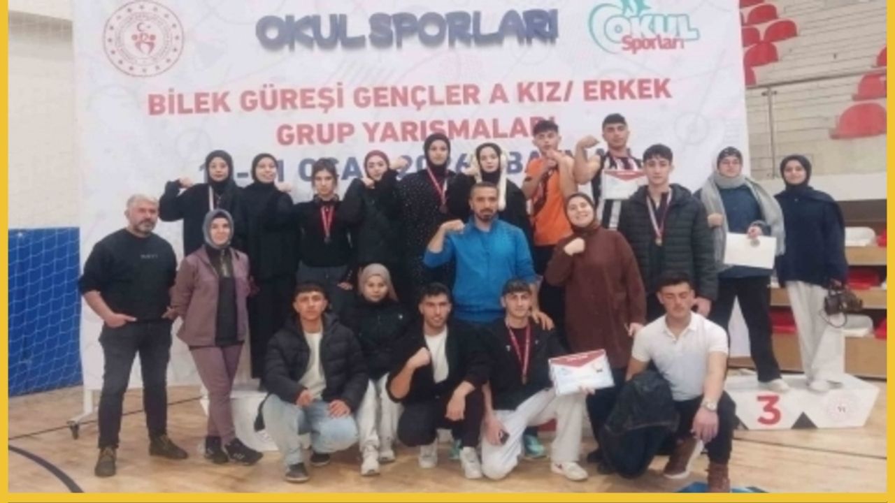 Bir diğer başarı haberi ise sol kol 50 kilogramdan geldi; Erkenek Şehit Gökhan Kuzu Anadolu Lisesi öğrencisi Veysel Ciğal, bölge üçüncüsü olarak kürsüye çıkma başarısı gösterdi.