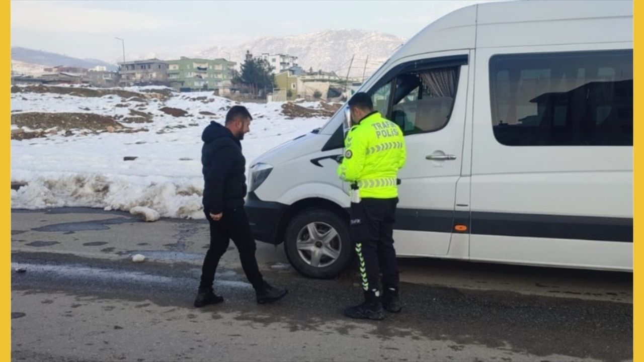 Denetimler kapsamında öğrenci taşımacılığı yapan araçlarda, kış lastiği ve zincir bulundurulup bulundurulmadığı ve sürücü evrakları incelendi.
