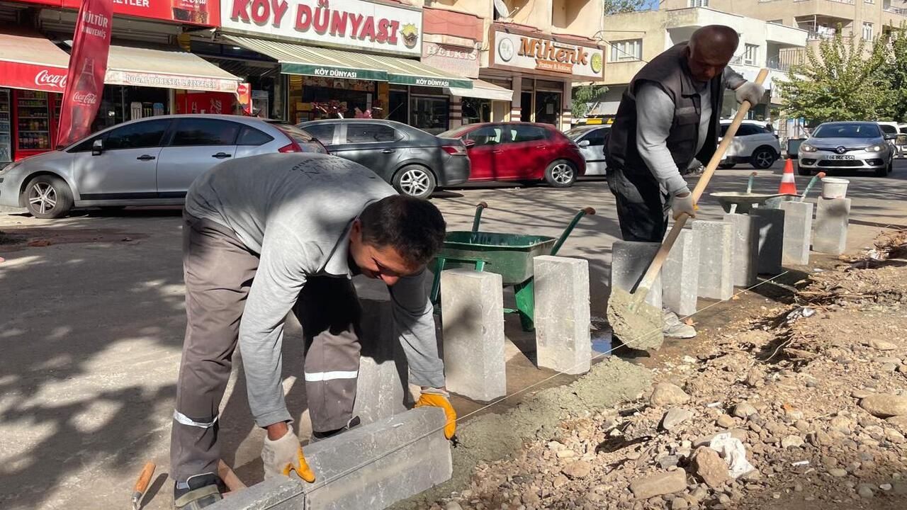 Belediye Fen İşleri Müdürlüğü, 5 personel, 1 kepçe ve 1 pikap desteğiyle gerçekleştirdiği çalışma kapsamında, yıpranan ve zarar gören taşlar sökülerek yerlerine yeni bazalt taşları döşüyor.