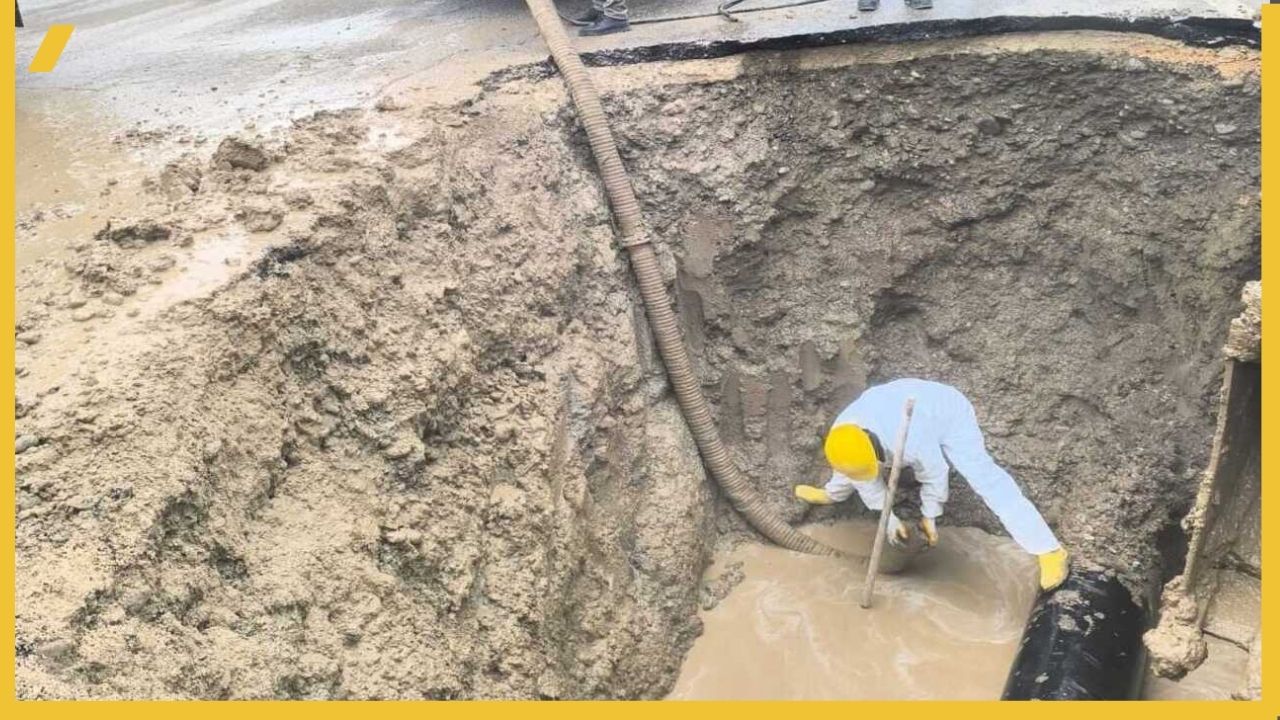 Ekipler, 4 metrelik derinlikte yürütülen zorlu mesai sonucunda, 450'lik ana su borusunda meydana gelen patlağı onardı.