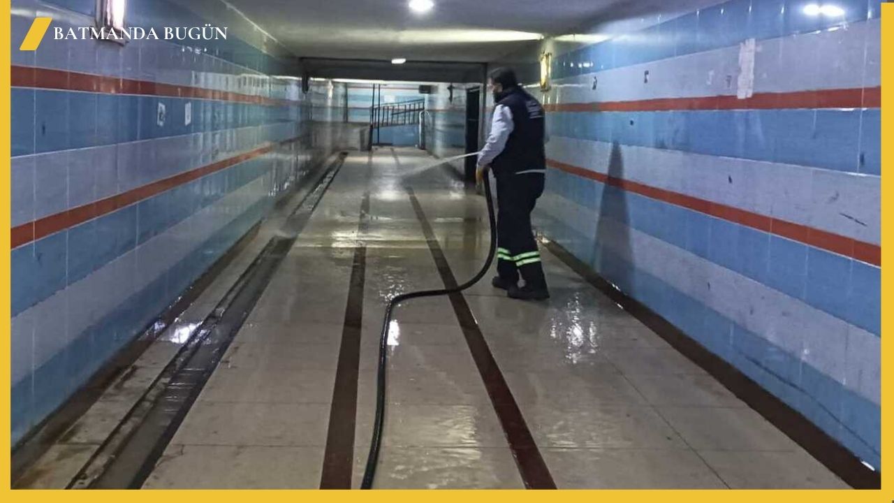 Belediye ekipleri, 1 arazöz ve 3 personelin görev aldığı bu operasyonda, geçitlerin zemin ve duvar yüzeylerini özel temizlik ve dezenfektan malzemeleri kullanarak detaylıca yıkadı.
