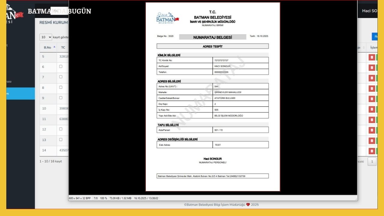 Belediye İmar ve Şehircilik Müdürlüğü’nün ihtiyaç duyduğu “Numarataj Programı”, Bilgi İşlem Müdürlüğü bünyesindeki mühendisleri tarafından öz imkanlarla geliştirildi.