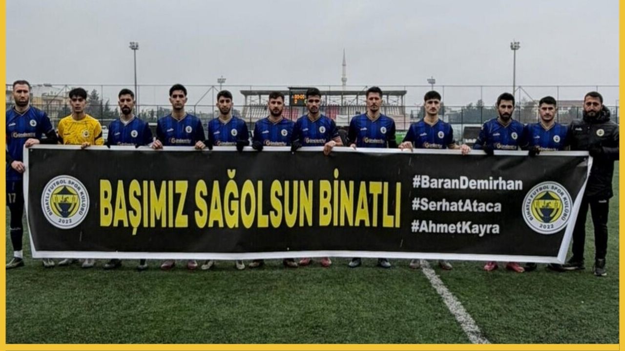 Geçtiğimiz hafta oynanan kritik müsabaka öncesinde, Binatlı Futbol SK oyuncuları seremoniye ellerinde "Başımız Sağolsun Binatlı" yazılı siyah bir pankartla çıktı.