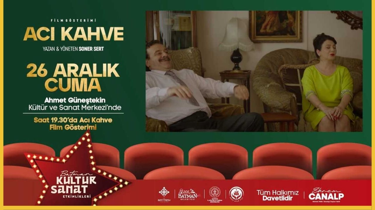 Yönetmen koltuğunda Soner Sert’in oturduğu, katıldığı festivallerden ödüllerle dönen "Acı Kahve", beyaz perdenin büyüsünü Batmanlıların ayağına getiriyor.