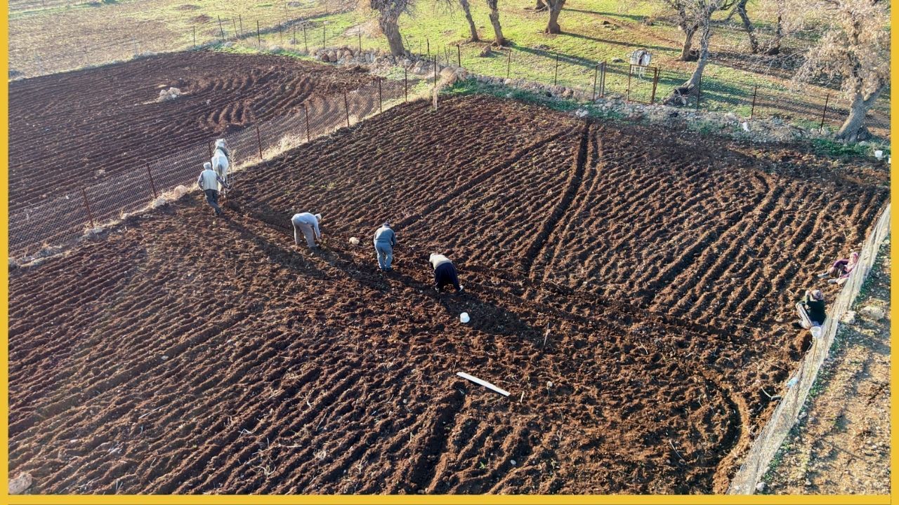 'Sarımsaklarımızı tek tek toprağın altına koyuyoruz. Sarımsağımız susuz olarak yetişiyor. Geçen sene yağmur yağmadığı için fazla verim alamadık. Yine ekim yapıyoruz ama inşallah bu sene yağmurlu geçer. Daha verimli, daha güzel olur. Bu sarımsak doğaldır. Sadece hayvan gübresini tarlaya atıyoruz.'