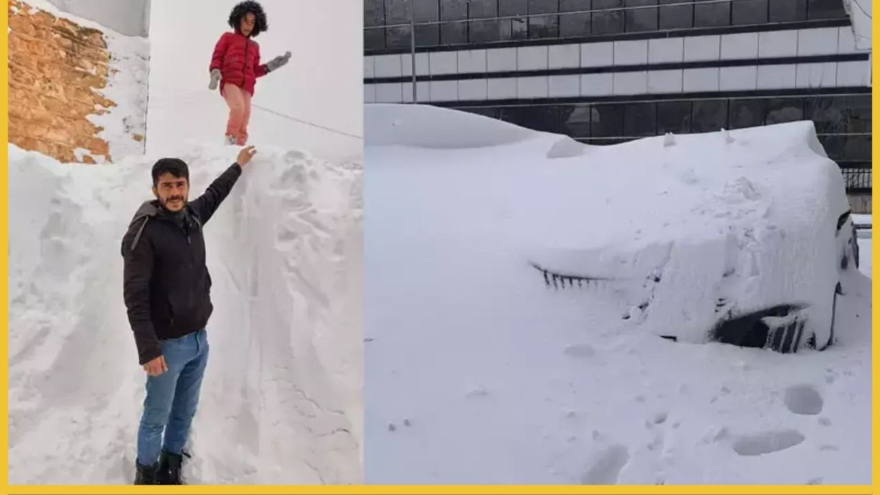 Kar kalınlığının yer yer 2 metreyi aştığı bölgede hayat durma noktasına gelirken, park halindeki araçlar kar kütlelerinin altında tamamen gözden kayboldu.