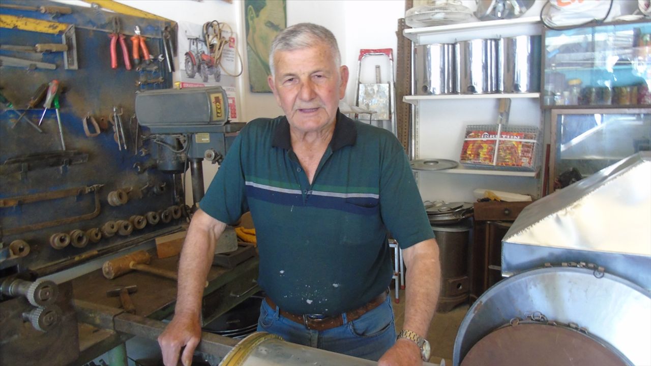 İslahiye ilçesinde 60 yıldır tenekecilik yapan Vehbi Çanakçı, soba, soba tamiratı, mangal, kebap şişi ve semaver gibi malzemeler yaparak hayatını sürdürüyor.