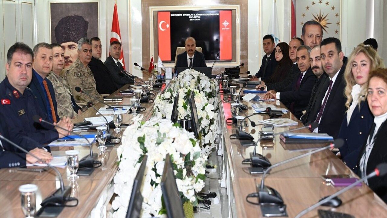 Vali Ekrem Canalp’in liderliğinde bir araya gelen üst düzey heyet, kampüs sınırlarından öğrenci yurtlarına kadar her noktayı kapsayan kapsamlı bir güvenlik stratejisi belirledi.