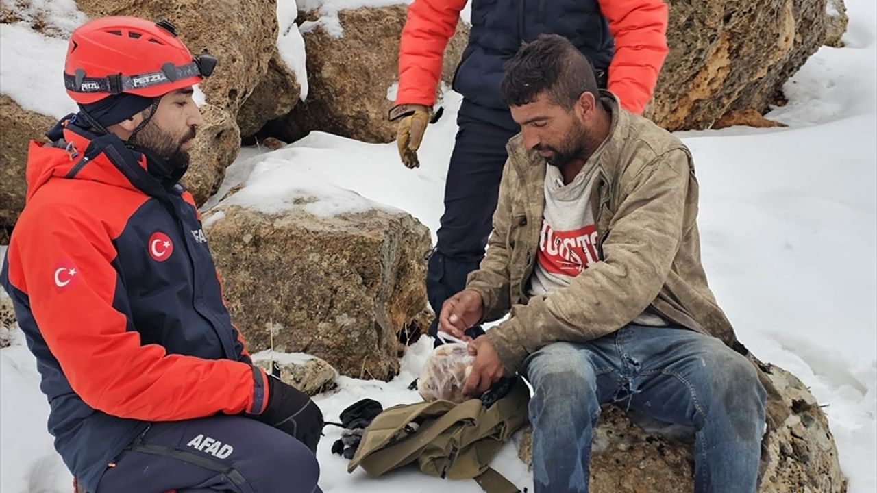 Dondurucu soğuğun etkisini artırdığı saatlerde ekipler, çobanın sığındığı mağaraya ulaşmayı başardı.