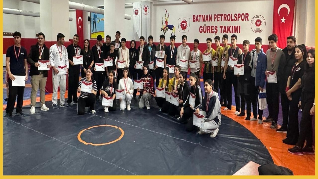 TPAO Güreş Salonu'nda düzenlenen bu önemli spor organizasyonuna, 6 farklı okuldan toplam 50 sporcu katılım gösterdi. Sporcular, serbest stil erkekler ve kızlar kategorilerinde mücadele ederek izleyicilere heyecan dolu anlar yaşattı ve büyük takdir topladı.