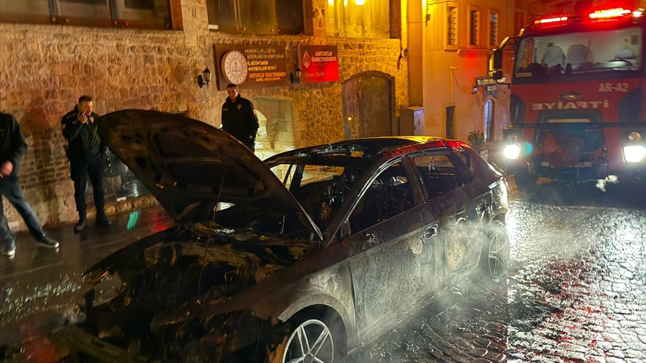 Artuklu, Şar Mahallesi mevkisinde ilerleyen ve sürücüsünün kimliği henüz belirlenemeyen araç, motor kısmından yükselen dumanların ardından kısa sürede ateş topuna döndü.