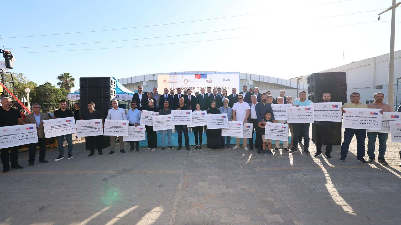 Bugün de 16 kooperatifimize 30 biçerdöver teslim ediyoruz. Böylece toplamda 24 tarımsal kalkınma kooperatifimize 44 biçerdöver desteği sağlanmıştır.