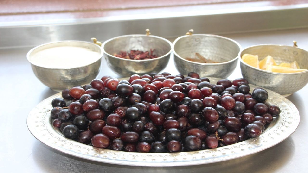 Malzemeler: 4 litre su, 2 kilo Mardin kara üzümü, 2 adet limon, hibiskus, karanfil ve tarçın çubukları.