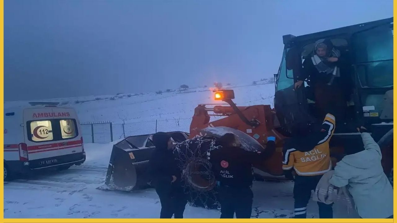 Ambulansın metrelerce karı aşamadığı o anlarda, bir kepçenin ağzı hayata tutunmanın tek yolu oldu.