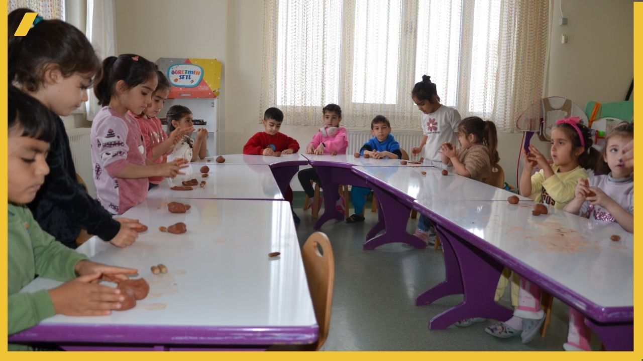 Proje doğrultusunda ilçedeki anaokullarında çocuklar yangınlardan etkilenen ormanlık alanların yeniden yeşermesine katkı sunmak amacıyla tohum topları hazırlıyor.