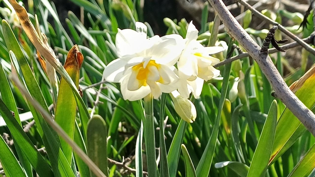 Beyaz ve sarı renklerden oluşan nergisler, doğada güzel görüntüler oluşturdu.
