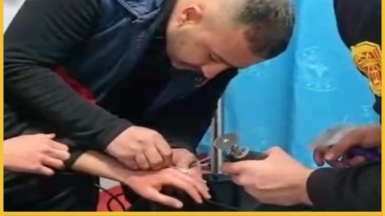 Özel kesme aparatlarının kullanıldığı ve saniyelerin önemli olduğu müdahale sırasında, metal halka parmaktan ayrıldı.