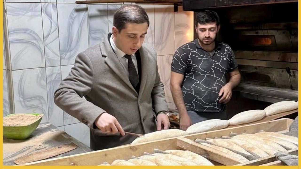 Esnaf ziyaretleri kapsamında ilk durağı olan fırında fırıncı önlüğünü giyen Kaymakam Başar, fırın küreğinin başına geçti.