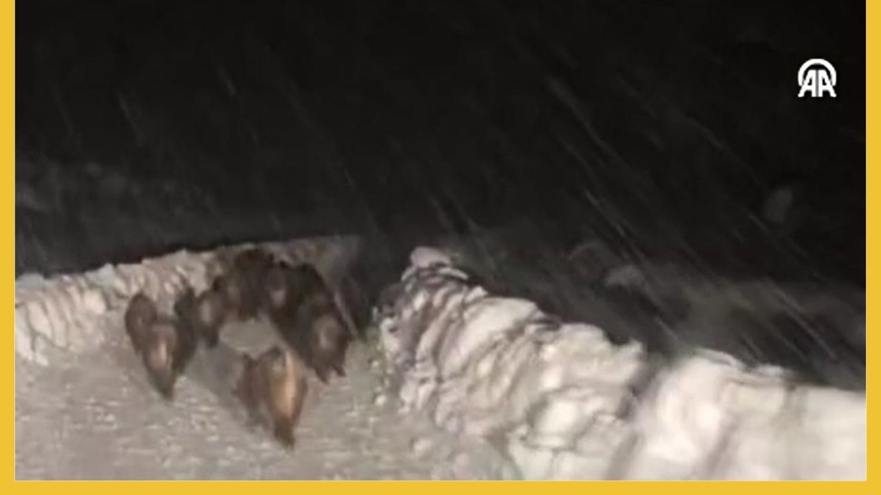 Kayıtlarda, sürücünün karlı yolda koşarak ilerleyen domuzlara 'yol verin' diye seslenmesi de yer alıyor.