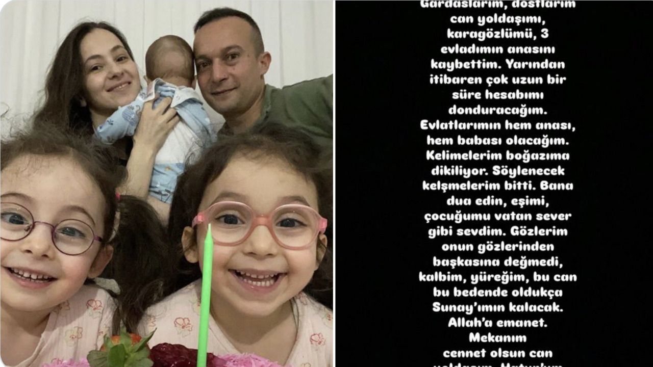 “Eşimi vatanı sever gibi sevdim. Evlatlarımın hem anası hem babası olacağım. Kelimelerim boğazıma dikiliyor. Bana dua edin. Mekanın cennet olsun can yoldaşım.”