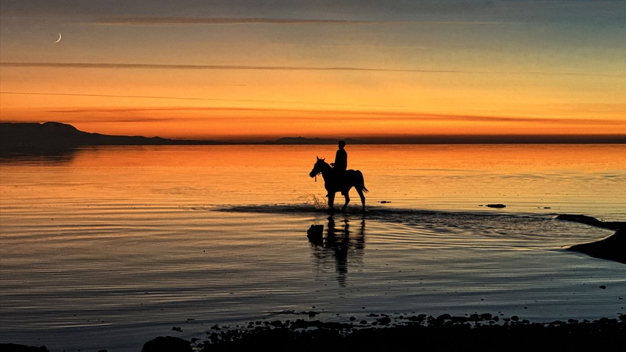 Bu doyumsuz anlar, göl kıyısında atıyla gezintiye çıkan bir vatandaşı da içine alarak unutulmaz kareler oluşturdu.